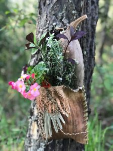 I gather materials and assemble with what is seasonally available of often found and given to me by other nature lovers.